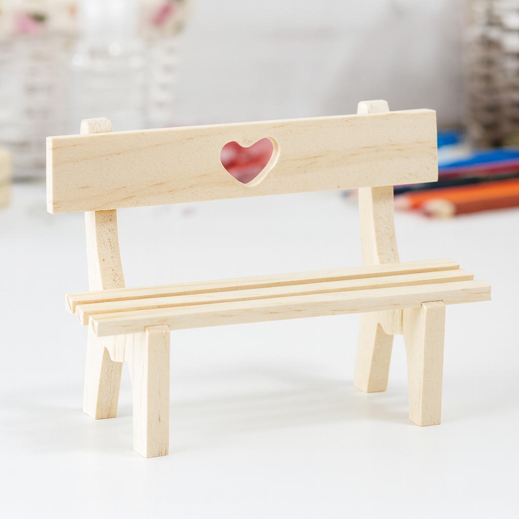 ✔ Miniatur Gartenbank mit Herz aus Holz